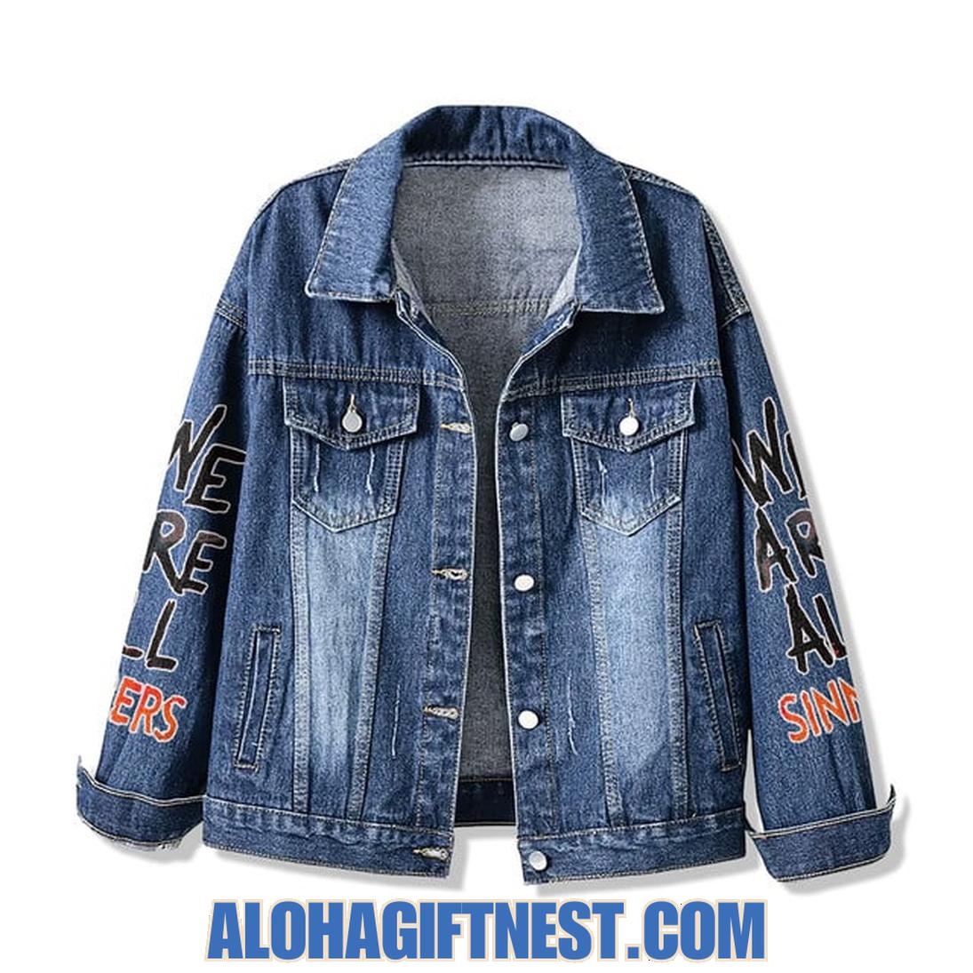 The design of the Sinners Dance With The Devil Limited Edition Denim Jacket captures the intense, thrilling essence of the show. The back features a powerful image from Sinners, showcasing key characters in dramatic poses, with the bold text “DANCE WITH THE DEVIL” above them. Below, the word “SINNERS” is displayed in striking letters. Each sleeve also features the phrase “WE ARE ALL SINNERS,” creating a visually impactful look that perfectly aligns with the series’ themes. This limited edition jacket is a must-have for any fan who wants to represent their connection to the show in a stylish, attention-grabbing way.