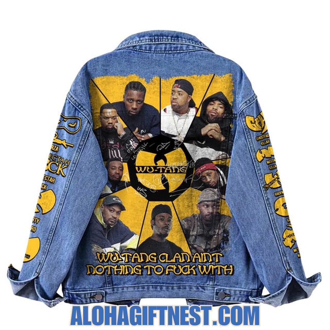 Show your love for one of the most iconic hip-hop groups of all time with the Wu-Tang Clan Ain’t Nothing To F*** With Denim Jacket. This denim jacket features a bold design showcasing Wu-Tang Clan’s legendary members. The back of the jacket is adorned with a powerful Wu-Tang logo in the center, surrounded by portraits of the group’s core members, along with the famous phrase “Wu-Tang Clan Ain’t Nothing To F*** With.” The front and sleeves feature additional Wu-Tang branding and iconic phrases, bringing an authentic streetwear vibe. Perfect for any Wu-Tang fan, this jacket is a must-have for anyone who wants to make a statement and pay homage to hip-hop royalty.